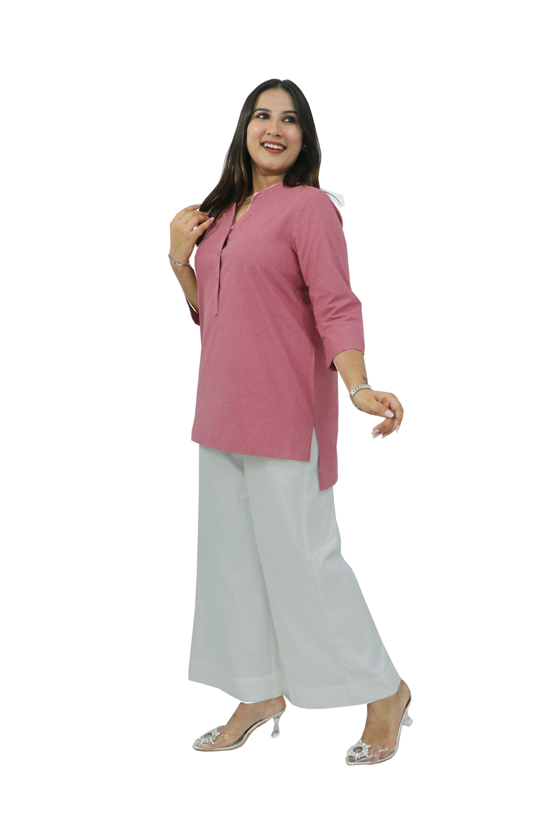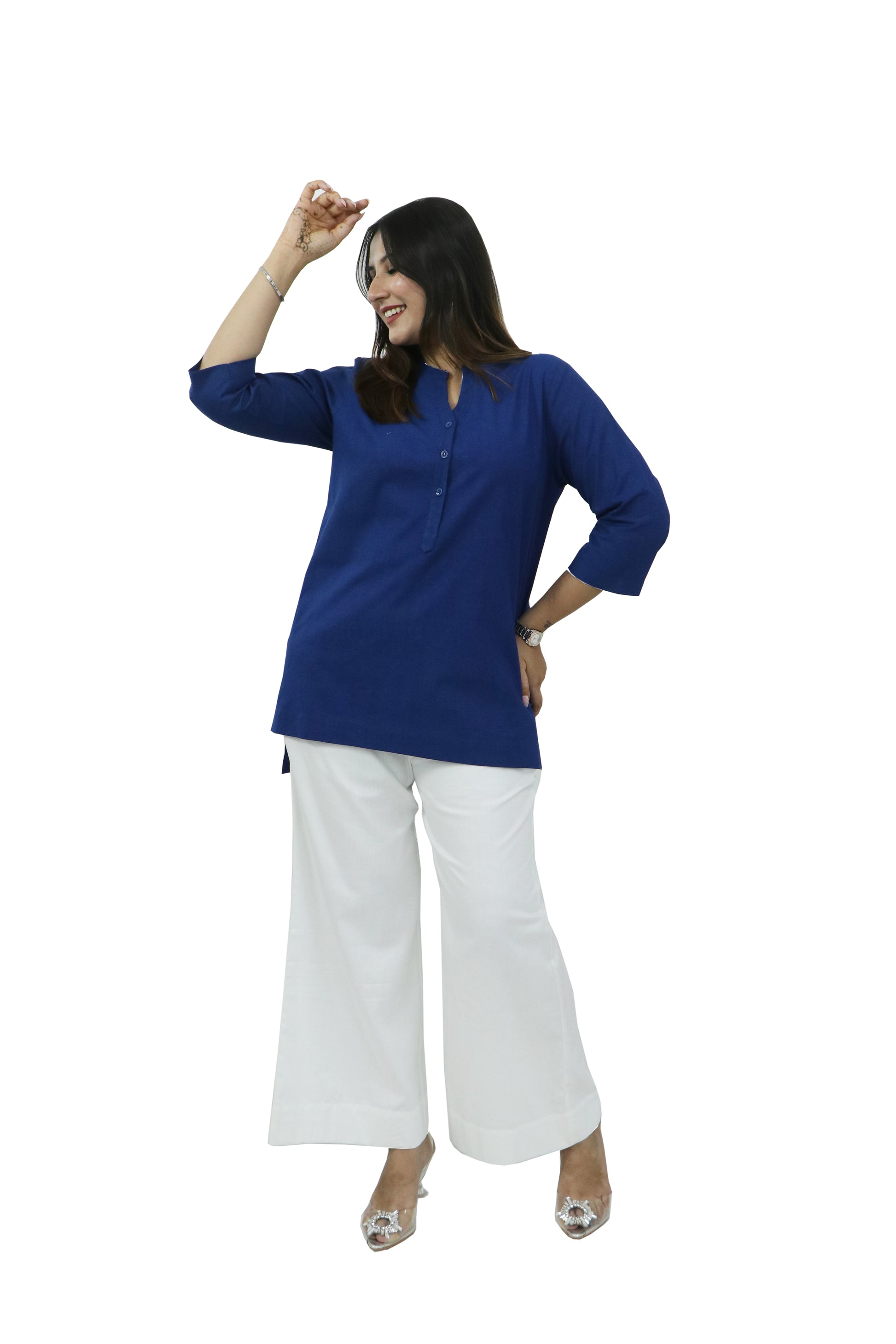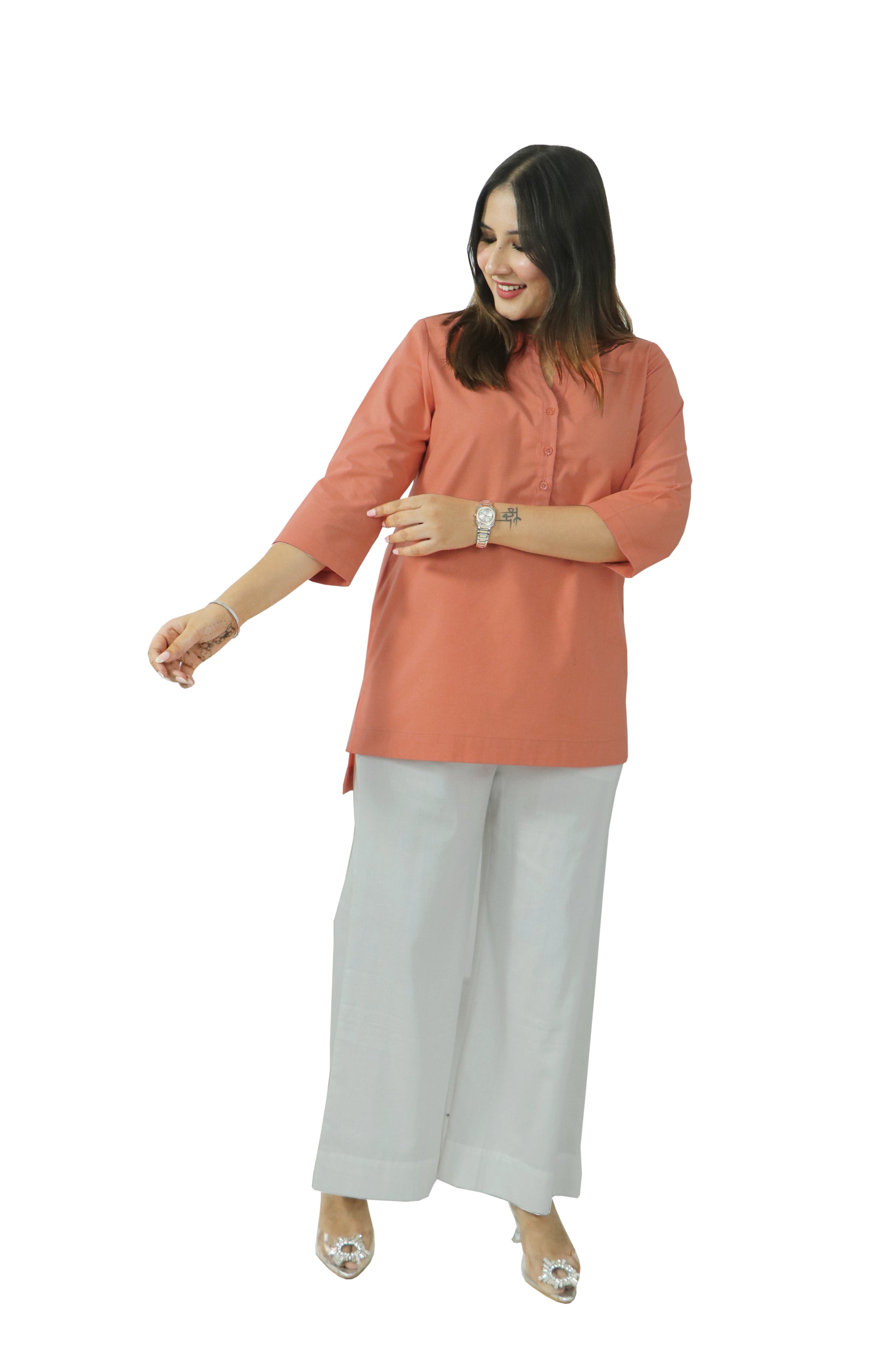 In today’s dynamic world, your outfit should work just as hard as you do, especially in a world that moves fast, grace should be your power. This collection of solid, elegant kurtas is designed for women who lead with purpose and style and navigate life with intention of balancing meetings and milestones alongside ambition and authenticity. Crafted from our breathable Premium Cotton fabric, each outfit promises all-day ease without compromising style, featuring mandarin collar with a buttoned placket, 3/4th sleeves for functionality and comfort and side slits and a straight hem for ease of movement throughout the day, seamlessly transitioning from professional to personal, empowering you to look and feel the best in every way.